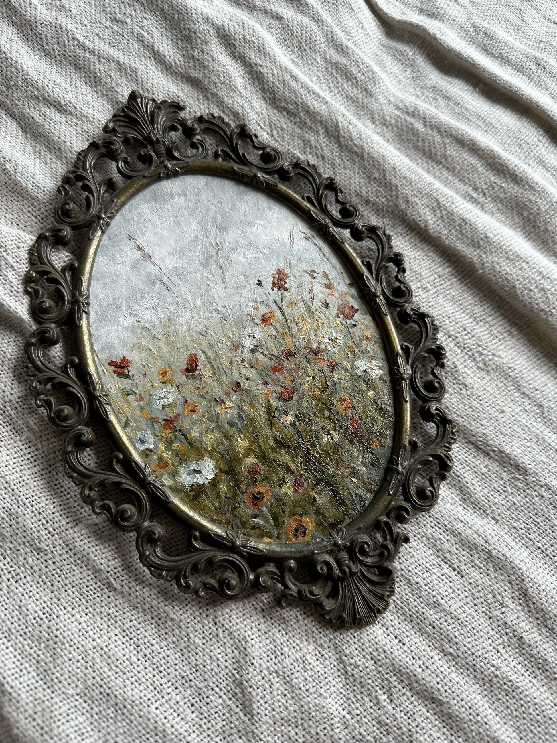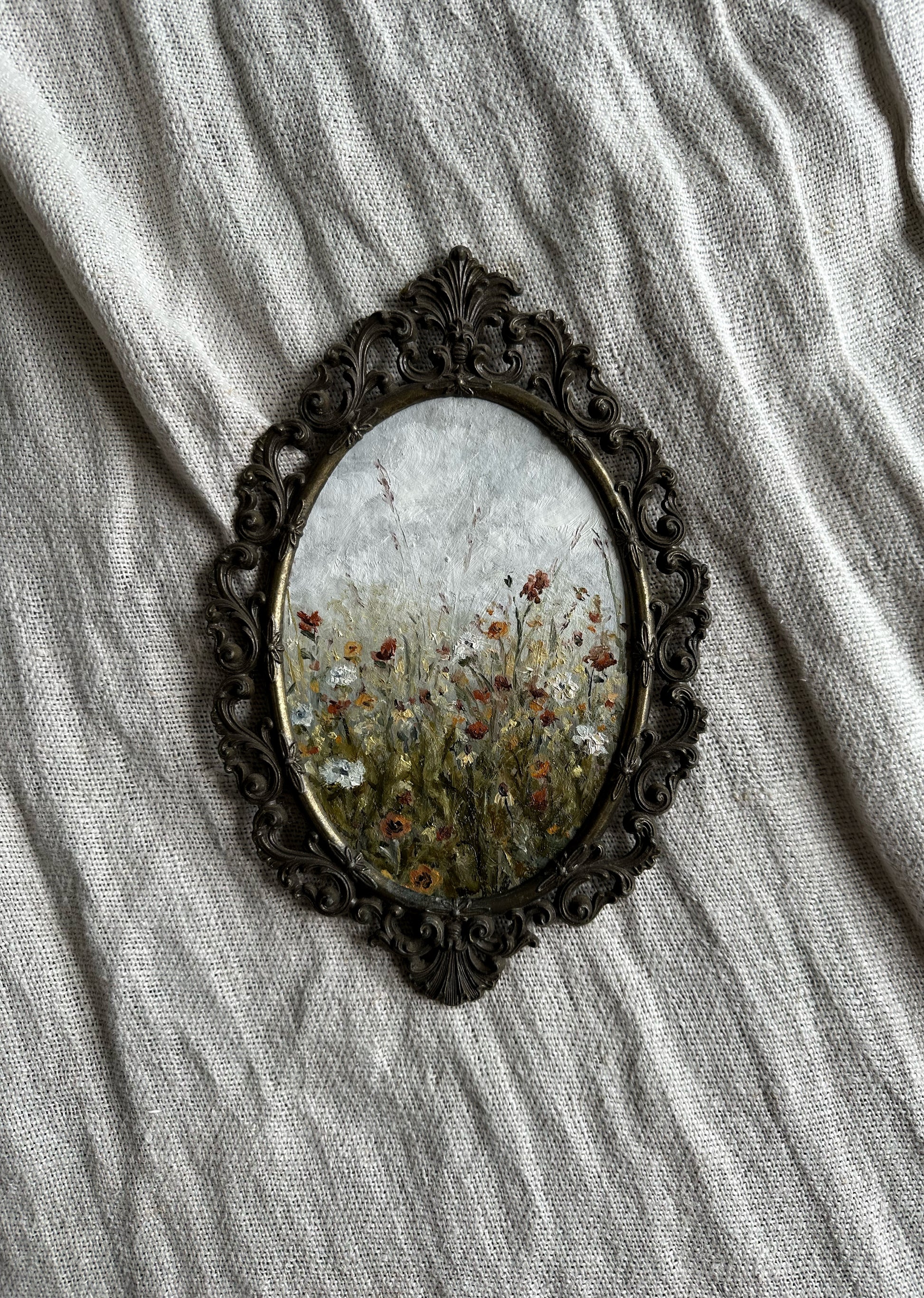 An oval floral field based on a little memory of the wildflowers from my recent travels to Europe.