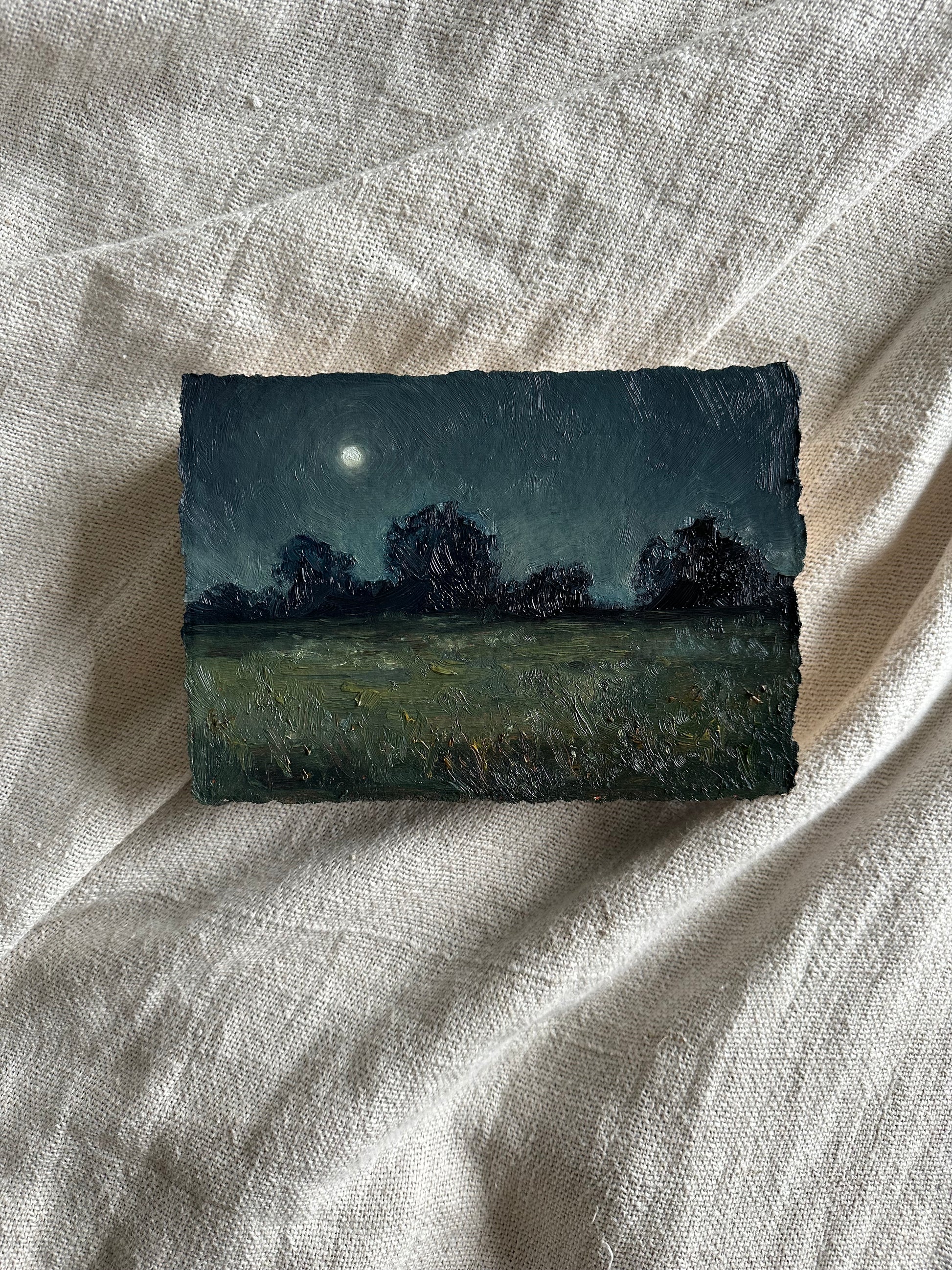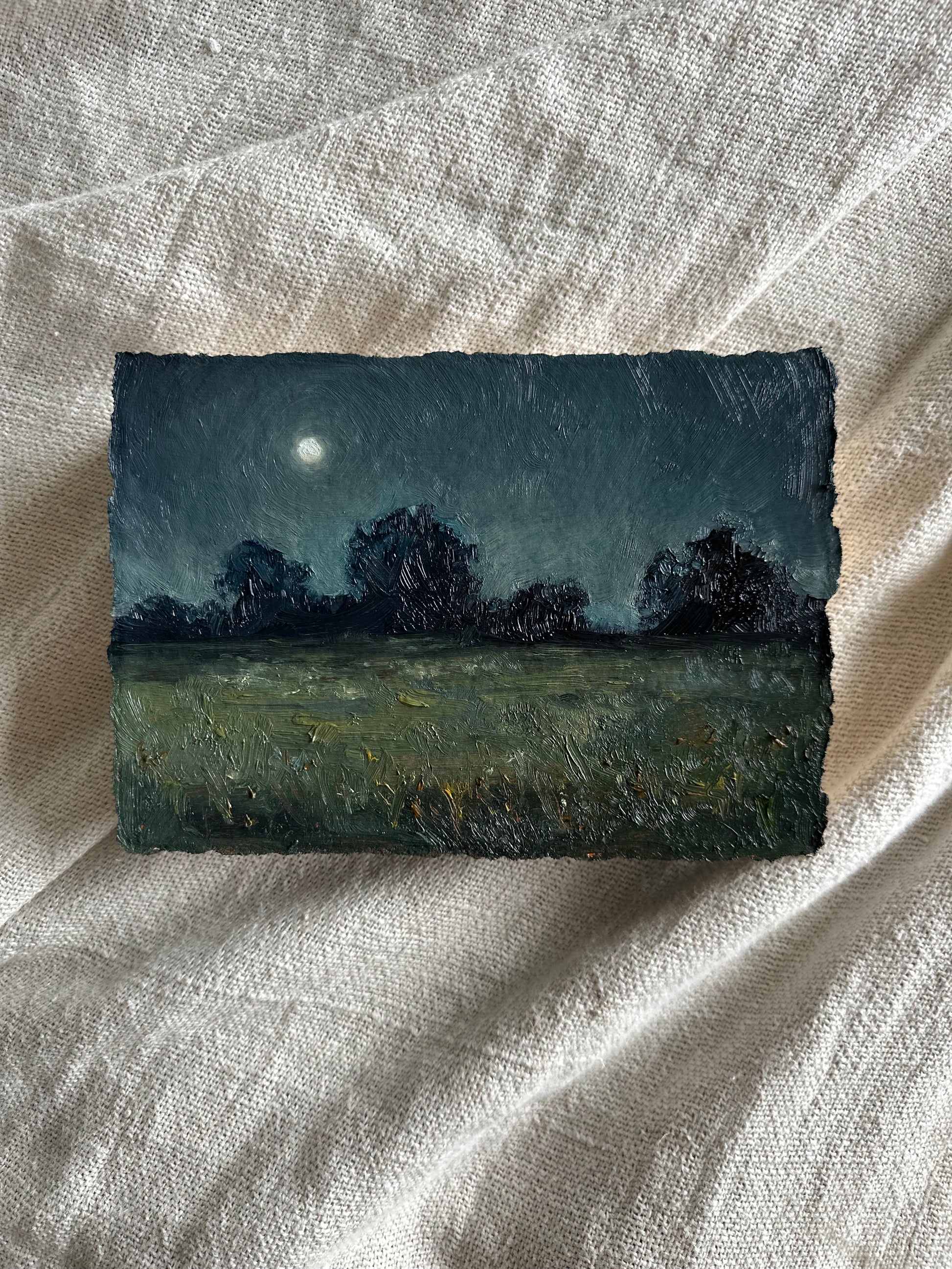 “A Secret Garden” Original oil painting on handmade paper with deckled edging will be varnished and signed on the back once dry. Roughly A5 measurements due to the handmade nature of the paper (5.8” x 8.2”)
