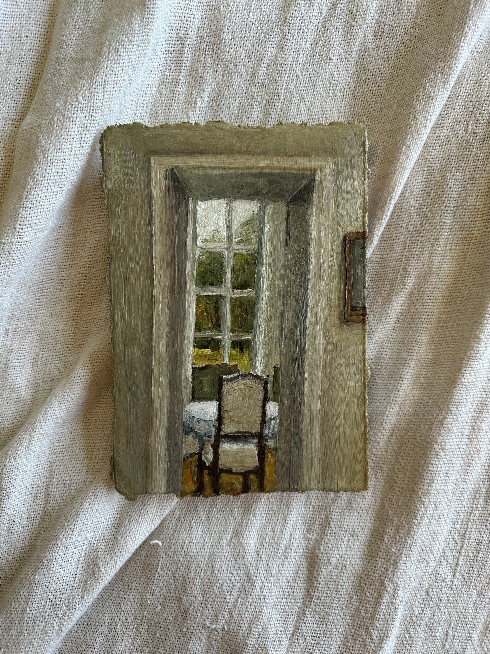 “An Autumn’s Day” Original oil painting on handmade paper with deckled edging will be varnished and signed on the back once dry. Roughly A5 measurements due to the handmade nature of the paper (5.8” x 8.2”)
