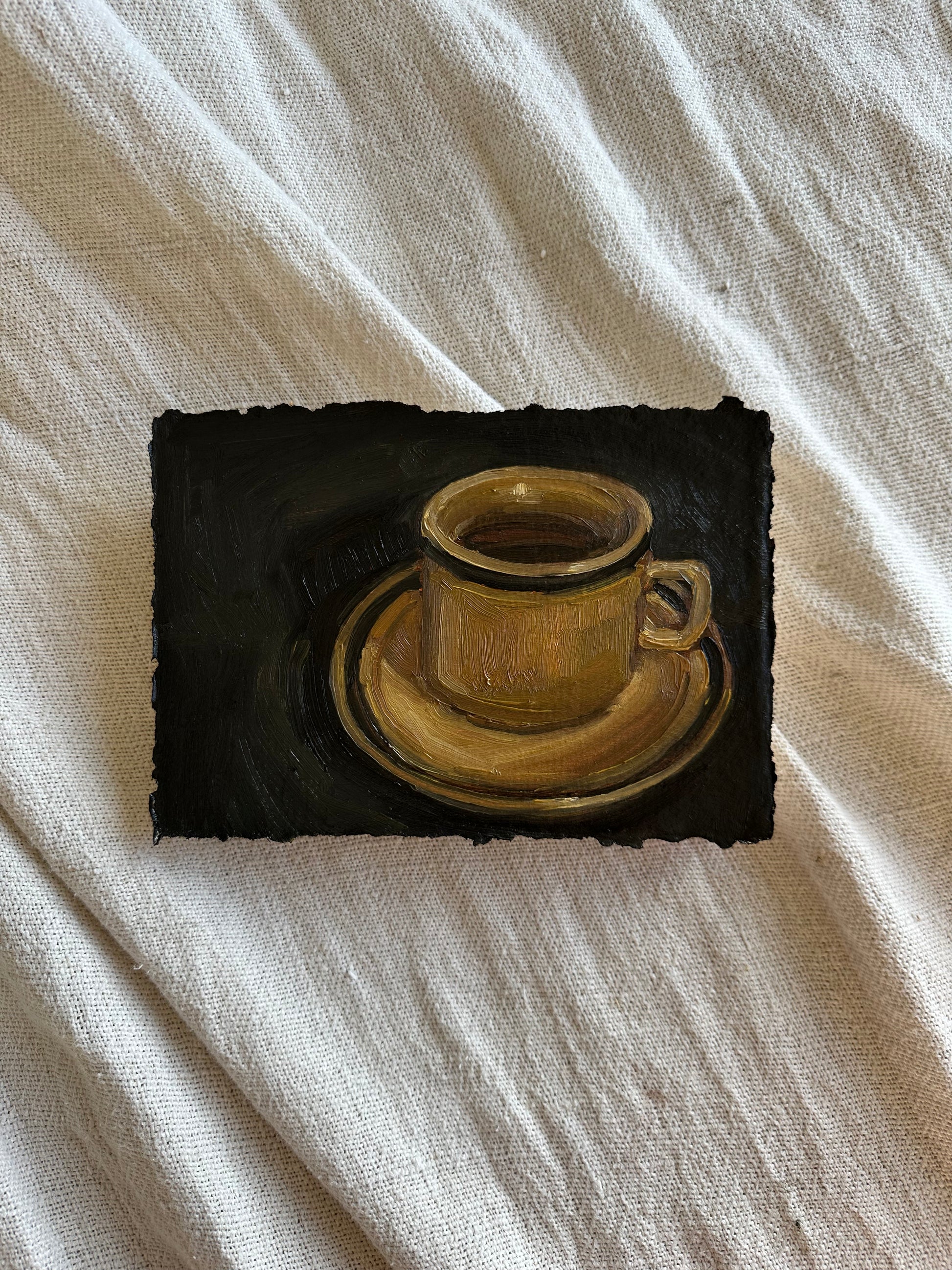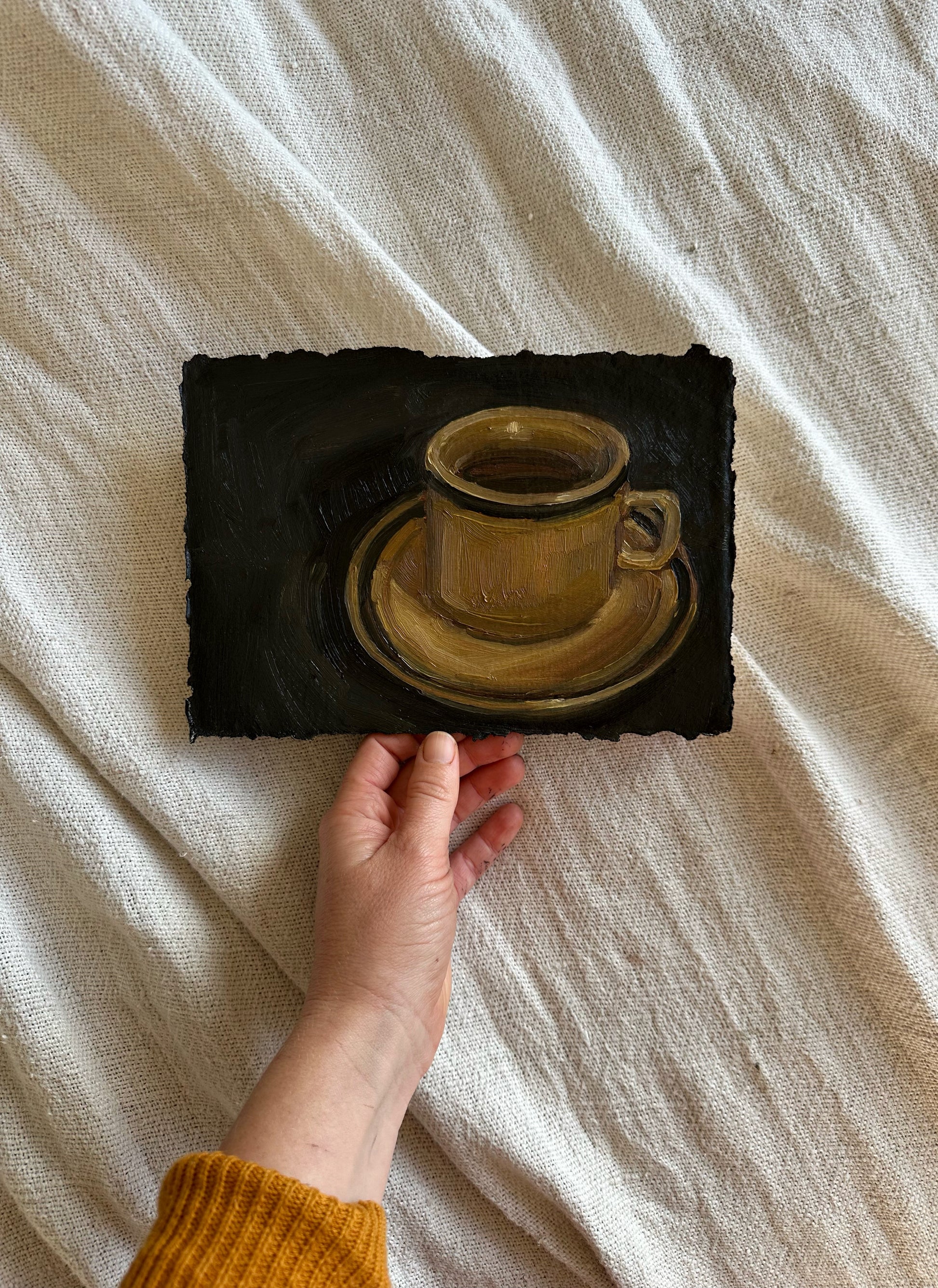 This Original oil painting on handmade paper with deckled edging will be varnished and signed on the back once dry. Roughly A5 measurements due to the handmade nature of the paper.