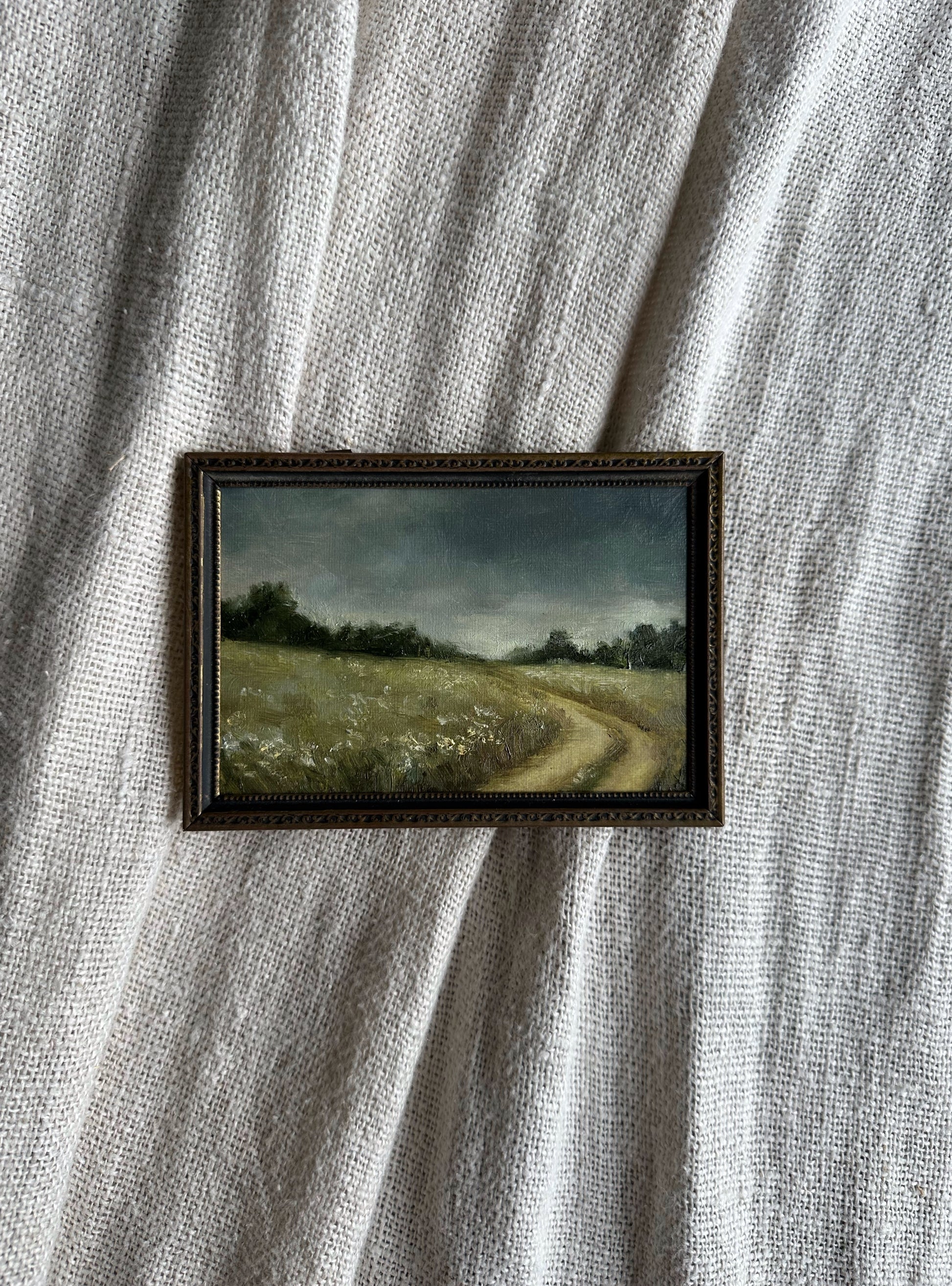 This Original oil painting on canvas paper will be varnished and signed on the back once dry. Measured at 13.2x9cm including the petite vintage frame.