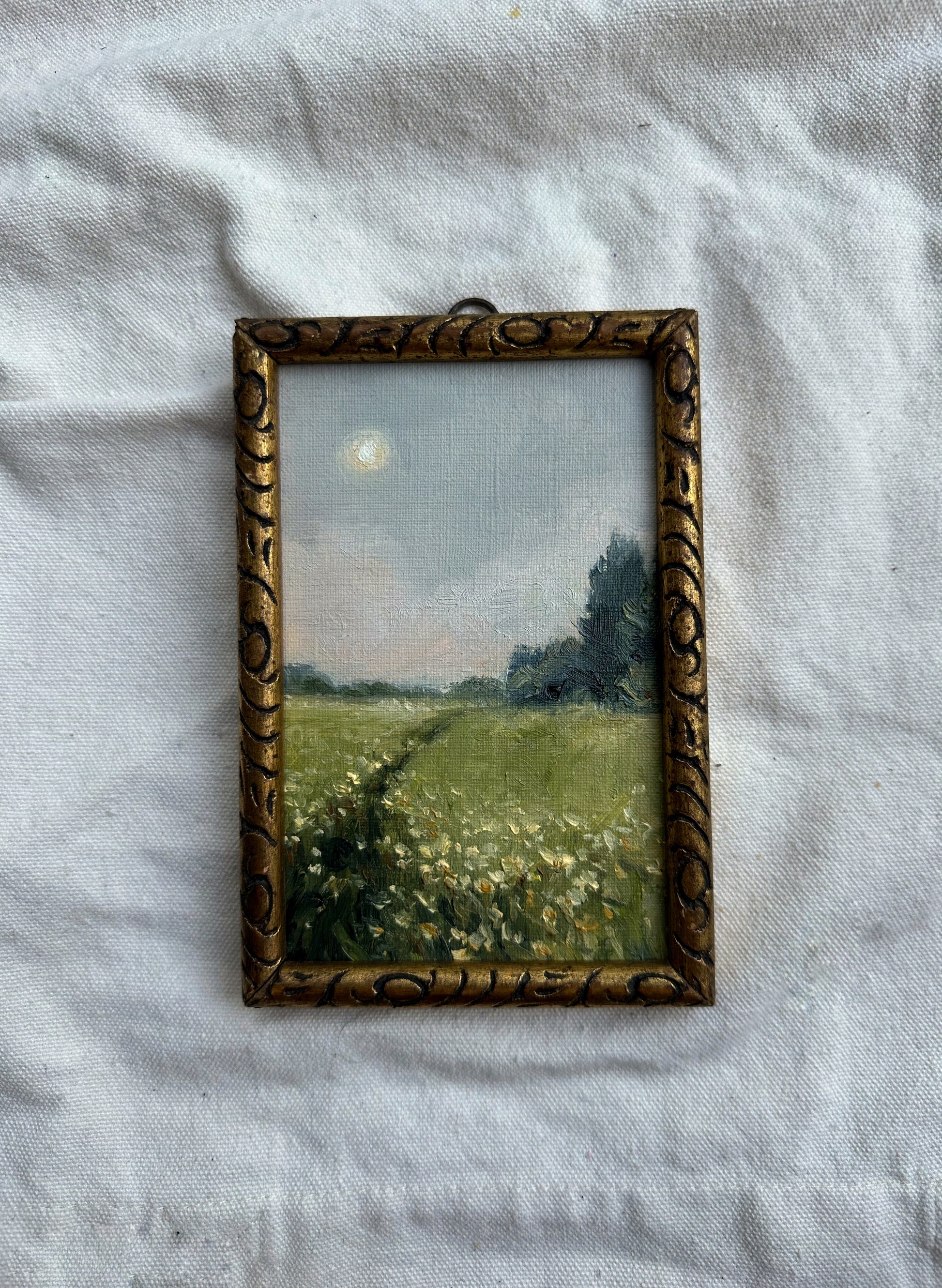 This Original oil painting on canvas paper will be varnished and signed on the back once dry. Measured at 10.2x15.2cm including the petite vintage frame.